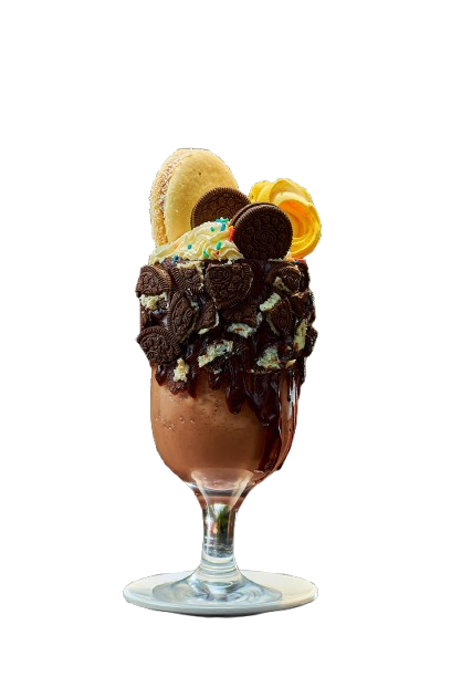 Galletas de oreo, alfajor en chocolate, merengue, baño de chocolate